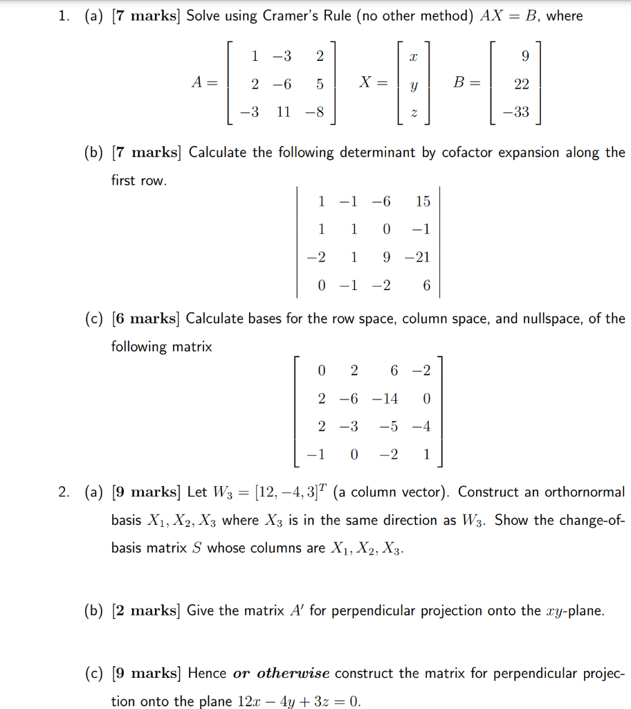Solved 1 A 7 Marks Solve Using Cramer S Rule No Other Chegg Com